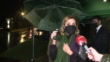 Ágatha Ruiz de la Prada leaves the funeral home with Duarte Falcó, Fernando Falcó's nephew