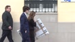 MADRID, SPAIN - MARCH 4: Ángela Rodrigo, wife of Fernando Ónega, and their son, Fernando Onega Jr. arrive at the mortuary chapel in Casa de Galicia on March 4, 2026 in Madrid, Spain. (Footage by Europa Press via Getty Images)