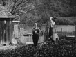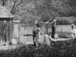 B/W 1920s man hitting man on head with sledgehammer / he moves away + we see post behind him / feature - stock video