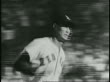 B/W 1940s baseball player Ted Williams in Red Sox uniform running in game / "Littlest Expert" doc.