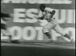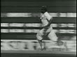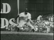 B/W 1940s PAN Jackie Robinson in Dodgers uniform stealing base during baseball game / documentary