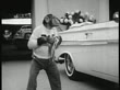 B/W 1950s chimpanzee "Zip" standing by car looking at magazine / newsreel - stock video