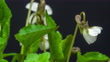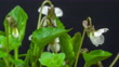 4k timelapse of an white Violet flower blossom bloom and grow on a black background. Blooming flower of Violaceae.