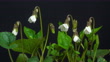 4k timelapse of an white Violet flower blossom bloom and grow on a black background. Blooming flower of Violaceae.