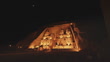 Zoom In Shot of Abu Simbel temple with bulb light up after sunset, Egypt.