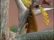 CU Acacia Ants (Pseudomyrmex) crawling around and entering hole in thorn of Acacia Tree, Costa Rica - stock video