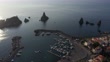 Aerial view & drone view of Aci Trezza at sunset, Sicily, Italy.
