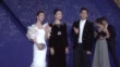 XIAMEN, CHINA - NOVEMBER 23: (L-R) Actress Cecilia Liu Shishi, actress Ni Ni and actor Darren Wang Talu attend the closing ceremony of the 28th China Golden Rooster And Hundred Flowers Film Festival on November 23, 2019 in Xiamen, Fujian Province of China. (Footage by VCG)