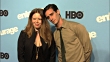 2008 ENTOURAGE PREMIERE: MANHATTAN, NEW YORK: HD: Actress Natasha Lyonne posing on carpet outside Ziegfeld Theater for press photographs, joining actor James Ransone (The Wire) posing together.