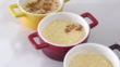 Adding cinnamon powder to a delicious sweet food recipe of rice pudding.