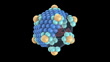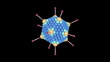 Animation showing the structure of an adenovirus as it is built up component by component. At its core is a double-stranded DNA genome (red). This is enclosed in an icosahedral capsid made up of 12 penton bases (yellow) at the vertices, each surrounded by five peripentonal proteins (light blue). The rest of the capsid is made up of 240 hexon proteins (dark blue). Each penton base carries a fibre protein, whose tip allows it to bind to and enter host cells. Adenoviruses typically cause upper respiratory tract infections. Their large capsids have made them popular as carriers of genes in gene therapy or for vaccines, such as some of the covid-19 vaccines