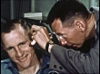 1965 MONTAGE Gemini IV astronauts participate in post-reentry procedures on board USS Wasp aircraft carrier after successful splashdown / United States
