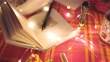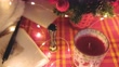 A traditional ink pen, wax stamp and paper with Christmas decoration