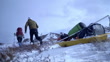 Adventurous Tourists Pulling Sled On Snowy Landscape In National Park During Vacation - Denali National Park, Alaska - 4K stock video