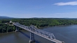 Aeiral view of Rap Van Winkle bridge over the Hudson River in Catskill New York - 4K stock video