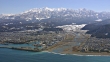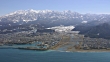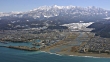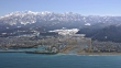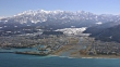 Bird's-eye shot of Itoigawa city in Niigata prefecture facing the Sea of Japan, and the snow-capped Myoko-Togakushi Renzan(Mountains) National Park. Shot by 4K UHD helicopter camera.