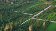 Aerial Drone of Dunhuang an oasis surround with Sand Duneat the crossroads of the ancient Southern Silk Route, Dunhuang City, Gansu District, North West of China
