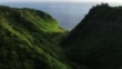 Aerial drone view flying through valley towards ocean - 4K stock video