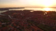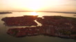 Aerial flying around the island of Murano in Venice, Italy at Sunset - 4K stock video