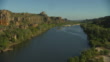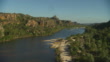 Aerial WS flying over river next to cliffs before following helicopter - HD stock video