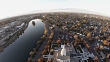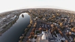 Slow aerial flyover of Snake River in Idaho Falls, Idaho moving towards the LDS Mormon Temple.