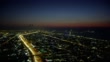 Aerial night illuminated city view Sheikh Zayed road Burj Al Arab commercial residential suburbs district vehicle transport highway metro UAE Dubai RED WEAPON
