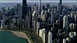Aerial of Chicago Skyline on Lakefront on a Sunny Spring Day
