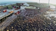 Aerial over rocky inlet and building/ Western Cape/ South Africa - HD stock video