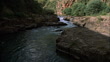 Aerial shot of a group of kayakers paddling on the river - HD stock video