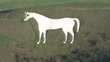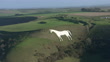 CLEAN: Aerial shots Westbury White Horse or Bratton White Horse on hillside on clear sunny day. on 2014-02-03 in Somerset, United Kingdom.