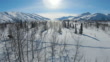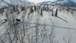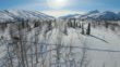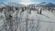 Aerial Tilt Up Shot Of Moose Walking Amidst Trees In Snow Covered Forest On Sunny Day - Valdez-Cordova, Alaska - 4K stock video