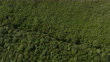 Aerial top view of vehicles on road amidst green trees, drone flying forward over landscape on sunny day - Tulum Beach