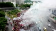 RIO DE JANEIRO, BRAZIL - FEBRUARY 21: Aerial view Fans of Flamengo cheering the arrival of the team at the stadium before a match between Flamengo and Internacional as part of 2020 Brasileirao Series A at Maracana Stadium on February 21, 2021 in Rio de Janeiro, Brazil.(Footage by Sergio Alves/Getty Images)