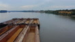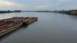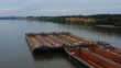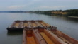 Aerial view of a floating barge on the river - 4K stock video