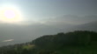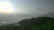 Aerial view of a mountain range in the Alps, with the peak of Mont Blanc at sunrise - 4K stock video