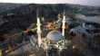 Aerial view of Eyup Sultan mosque with mahya lights during sunset in Istanbul, Turkey - 4K stock video