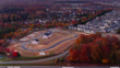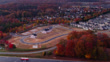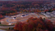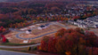 Rightward aerial pan centering on incomplete tract housing construction in Burlington, North Carolina at sunrise in Alamance County.