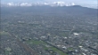 Railway tracks stretch across residential districts and farmlands in the suburbs of Kyoto.
