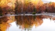 Drone View of Saco River Surrounded by Fall Colors, New Hampshire.
