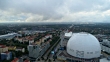 Aerial view over Ericsson Globe in Stockholm - 4K stock video