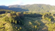 Aerial view over lush farmland at Nimbin, near Lismore NSW, Australia