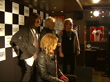 Aerosmith's lead singer Steve Tyler out of car surrounded by press photographers and into Hard Rock Cafe