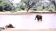 African Elephant drinking / cleaning on Ewaso Nyiro River at Samburu / Buffalo Springs at wild in Kenya