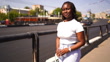 black girl walking down the street on a trip