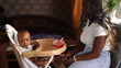black woman feeding her baby with a spoon in the kitchen