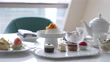 Afternoon tea, cakes and snacks with a teapot in the background. - 4K stock video