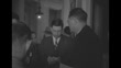 Agriculture Secretary Clinton Anderson, in middle, speaking with two men / VS Anderson walking down hallway surrounded by news reporters / Anderson stops and answers questions / Anderson leaves building / Anderson in hat and coat poses for photos, with the US Capitol in bg / CU Anderson talking (no audio) / Note: exact day not known