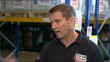 Iraq crisis: UK aid in Kemble warehouse; ENGLAND: Gloucestershire: Kemble:INTBanner 'UK Aid from the British people' / various shots of vehicles (jeeps) in warehouse / Desmond Swayne MP (International Development Minister) and Dylan Winder (Head of Humanitarian Response, Department of International Development) looking at aid supplies (jerry cans and solar lanterns) / Dylan Winder (Head of Humanitarian Response, Department of International Development) interview SOT