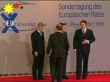 Serbia: Kosovo: NATO Air Attacks Begin; GERMANY: Berlin: INT Chancellor Gerhard Schroeder standing talking with others including Foreign Minister Joschka Fischer EXT French President Jacques Chirac and Prime Minister Lionel Jospin arriving for talks Dutch Prime Minister Win Kok arriving INT British Prime Minister Tony Blair MP standing for photocall with Schroeder, Fischer and British Foreign Secretary Robin Cook MP British Prime Minister Tony Blair MP interview SOT - Mr Milosevic knows what he has to do if he wants peace / We are preparing to take military action GV EU leaders sat around table for talks LMS Chirac and Jospin sat at table LMS Kok sat at table PAN Blair and Cook TX 24.3.99/LTN