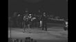 Title Card: 'Air Force: Operation Wingding' / WS Rockettes dance in line, orchestra in foreground / CU Rockettes dance / WS Rockettes dance and form two lines / WS audience / QS Gypsy Rose Lee holds skirt up and turns on stage/ Gypsy Rose Lee exits stage / shirtless Bob Hope glides across stage, turns gracefully and unfastens trousers / WS audience / MS Hope in polka dotted boxers drapes trousers over his arm and exits stage / CU General Dwight Eisenhower and wife Mamie in audience laugh / VS Bob Hope wearing huge boxing gloves engages Jack Dempsey in a mock boxing bout, Adolphe Menjou referees / Hope and Dempsey begin waltzing / Eisenhowers laugh / Hope and Dempsey skip off the stage as Menjou and another man waltz